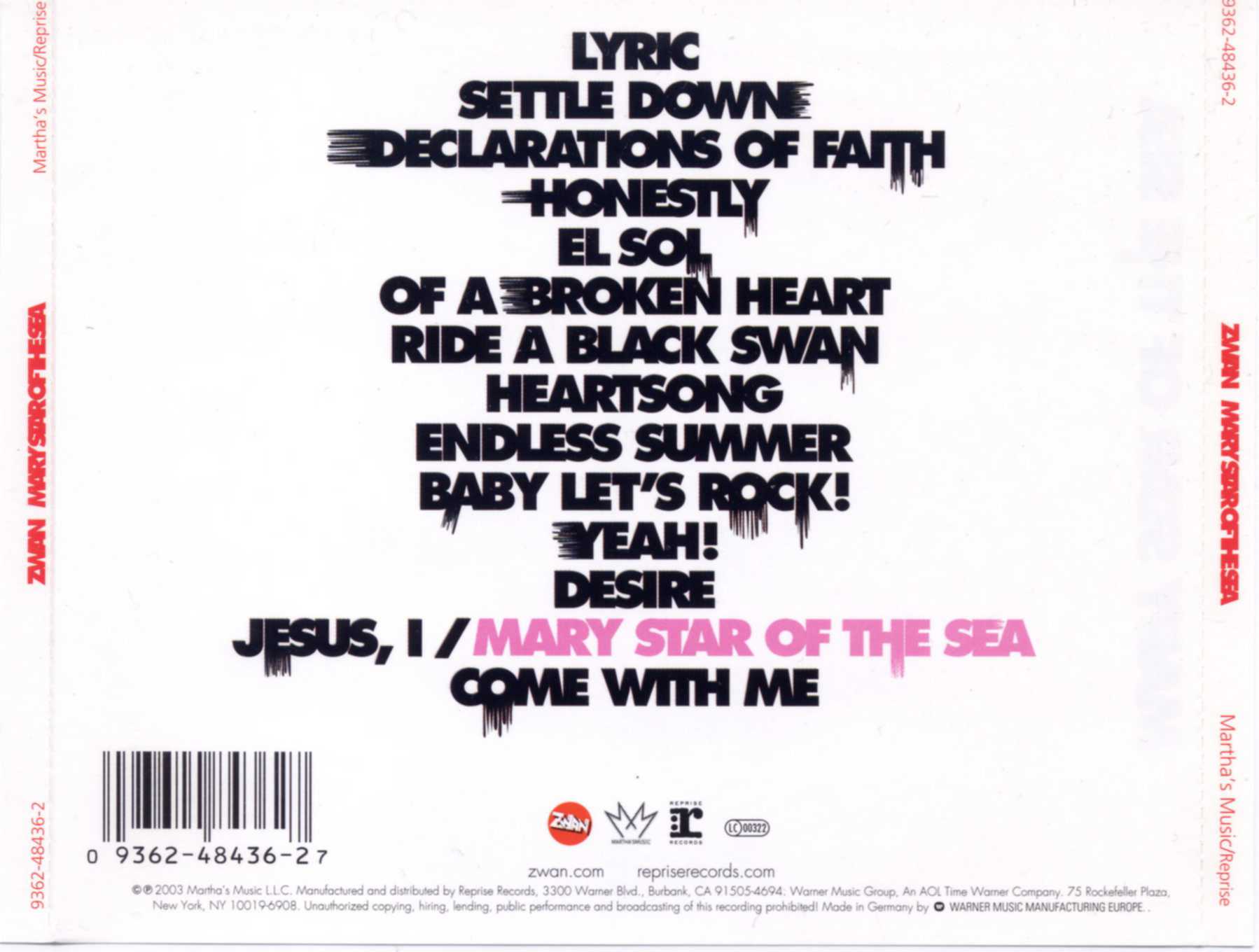 (CD) Marthas Music / Reprise Records , 9363-48436-27, Thailand