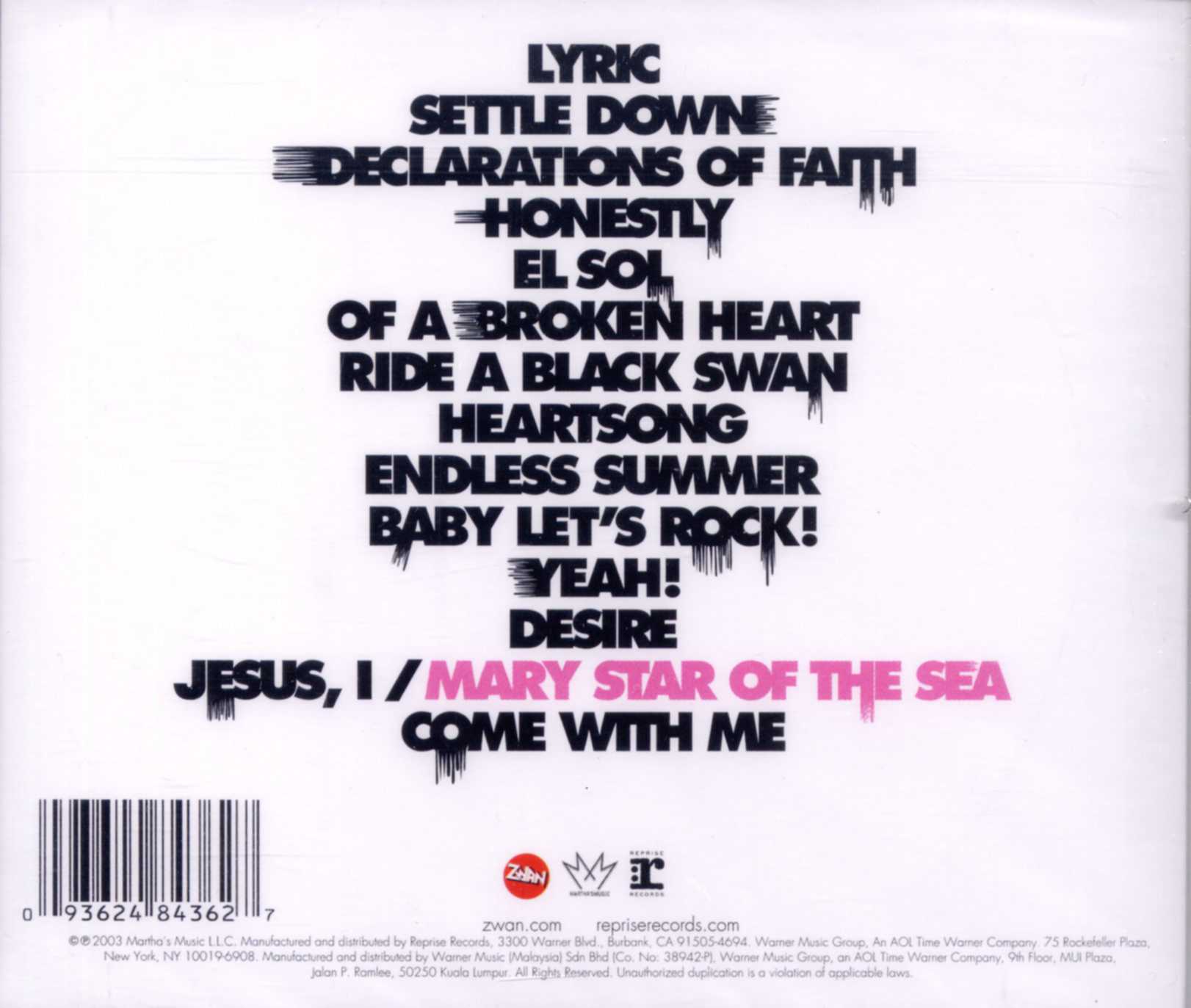 (CD) Marthas Music / Reprise Records , 9362-48436-27, Malaysia